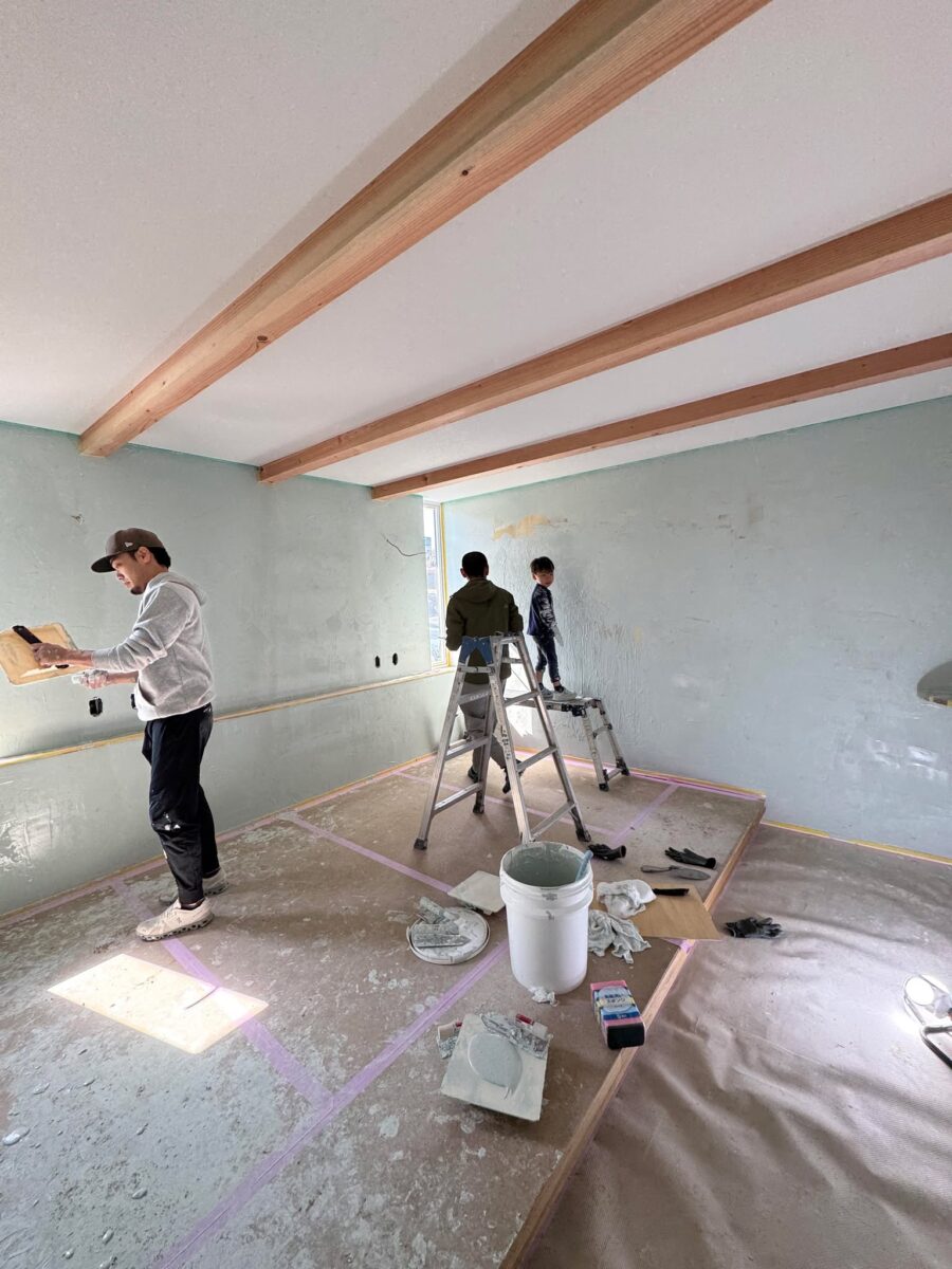 先日、安中市で進行中の新築現場にて塗り壁をお施主様と一緒に施工してきました。