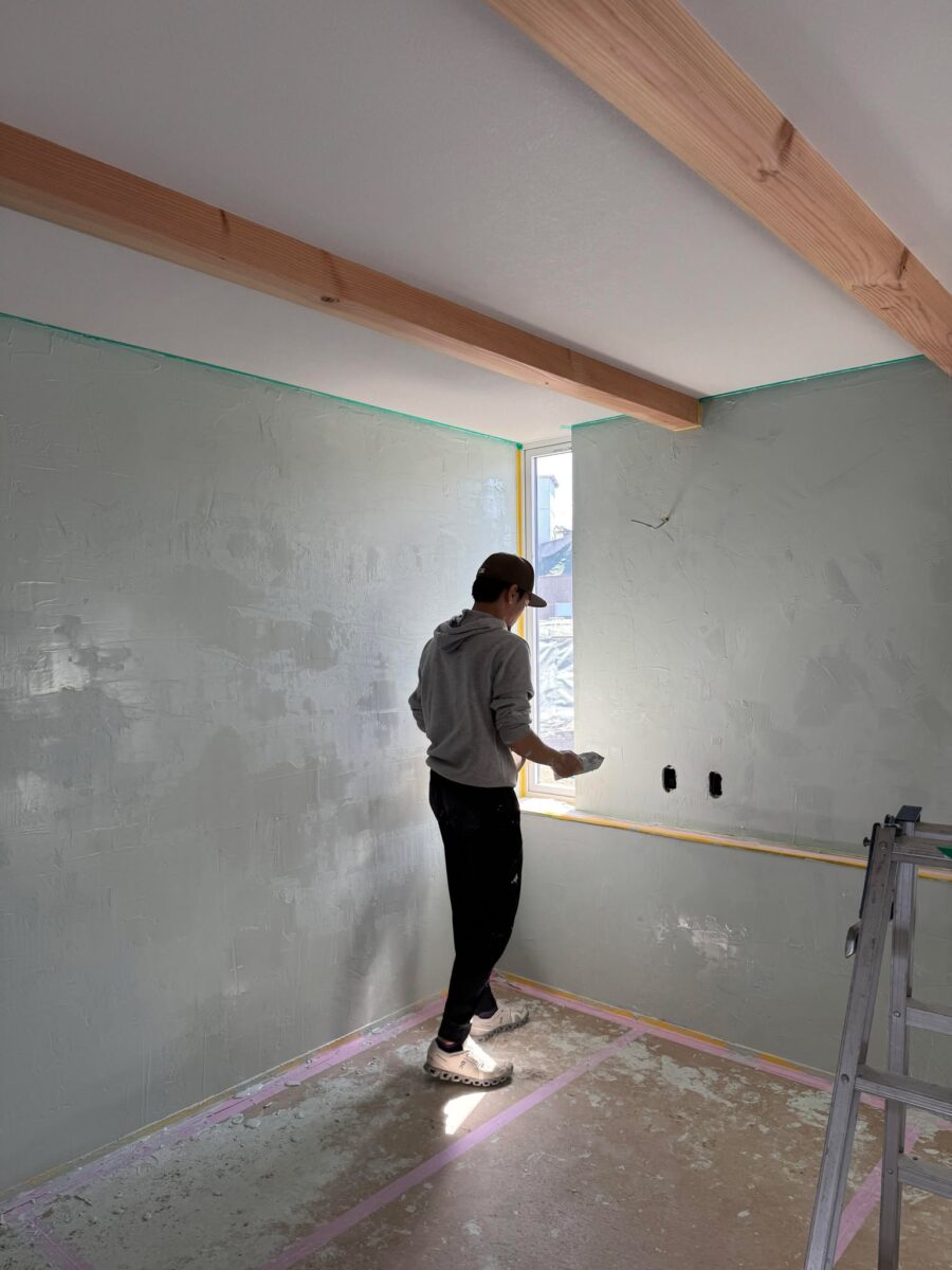 先日、安中市で進行中の新築現場にて塗り壁をお施主様と一緒に施工してきました。