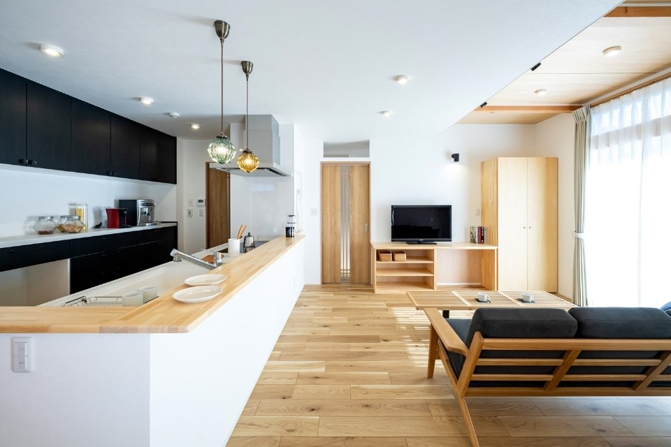 A. 両立できます。外はシンプルな箱型でも、内部に木の天井や造作の飾り棚、土間を取り入れると和の落ち着きが加わり、”和モダン”として自然にまとまります。素材の色味を3トーン以内に揃えることが統一感のコツです。