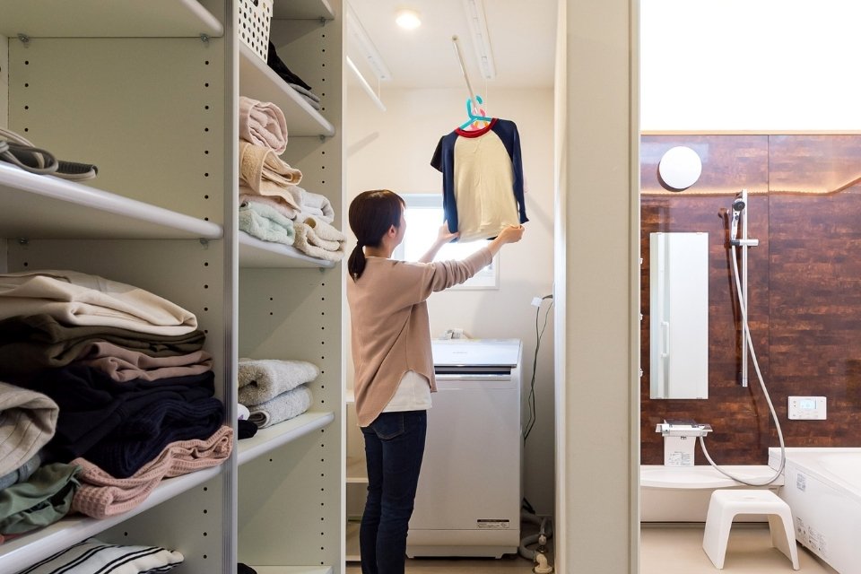 洗う・干す(室内干し)・畳むまでを一室でまとめやすくなります。