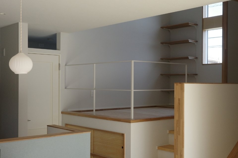 スキップフロアとは、同じ空間の中で床の高さに少し段差をつくり、空間に変化を生み出す設計です。